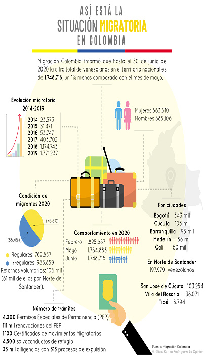 “En este momento, pese a las restricciones del régimen de (Nicolás) Maduro, han salido 106 mil venezolanos hacia su país, eso implica que 81 mil de esas personas lo han hecho por Norte de Santander y están a la espera de salir 44 mil de ellos aproximadamente, de los cuales 18 mil están en Bogotá, Cali y Medellín tienen un poco más de 3 mil 200 cada uno, Cartagena 1.900 y Barranquilla 1.800”, detalló Juan Francisco Espinosa, director de Migración Colombia.