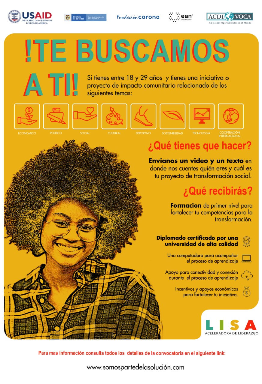 La inscripción la podrán hacer a través de https://www.somospartedelasolucion.com.co/lisa/. De los postulados se elegirán 130 jóvenes que iniciarán su bloque educativo el 2 de febrero de 2021.