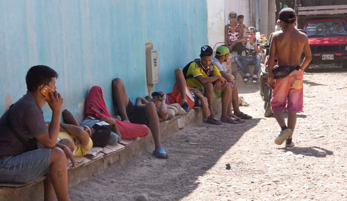 En la calle cuarta de La Parada un grupo de inmigrantes improvisó su campamento para descansar y lavar, porque están cerca del caño.