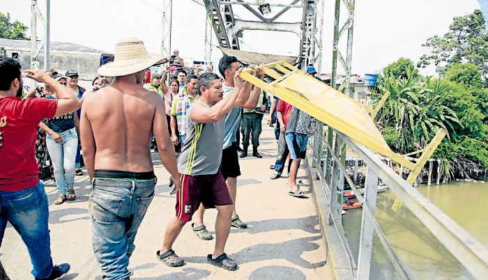 Ya para ese momento, unas doscientas personas secundaban su proceder y entre todos fueron tirando al río los obstáculos metálicos y otros llevados al lado colombiano, acercándose cada vez más a la tropa que se preparaba para repelerlos.