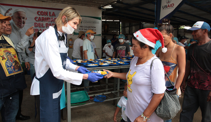 “La funcionario dice que el presidente de Estados Unidos está trabajando para ver de qué manera Maduro deje el poder en Venezuela, porque ellos –el gobierno norteamericano- no pueden hacer un golpe, que afectaría a muchas personas. Los presidentes de Colombia, Chile, Perú y Ecuador también se sumaron con esta ayuda con comedores como estos”, reveló esta mujer, de 43 años.