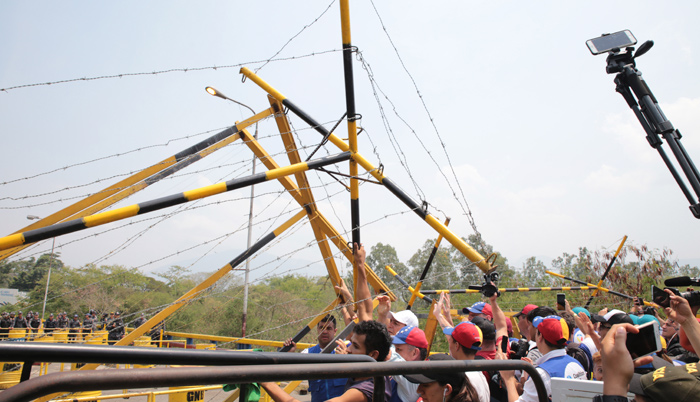 Previamente los voluntarios del gobierno interino de Juan Guaidó, liderados por la diputada Gaby Arellano, derribaron las barricadas y las lanzaron al río Táchira.