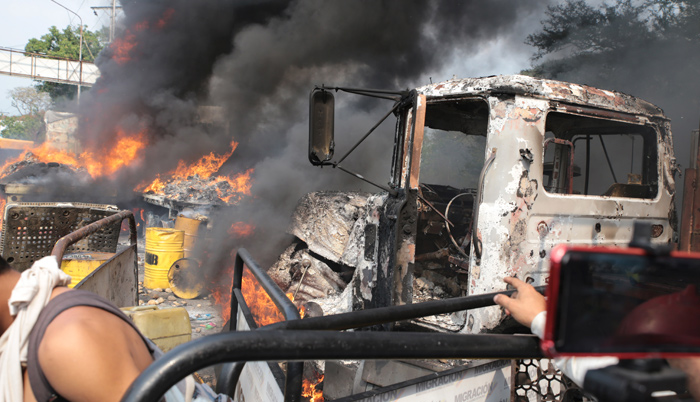 El 23 de febrero de 2019 pasará a la historia como el día en que 30 toneladas de medicinas, alimentos y kits de aseo quedaron reducidas a cenizas, en confusos hechos que se registraron ayer a la 1:50 de la tarde cuando cuatro tractomulas cruzaron al lado venezolano del puente Francisco de Paula Santander, que conecta a Cúcuta con Ureña.