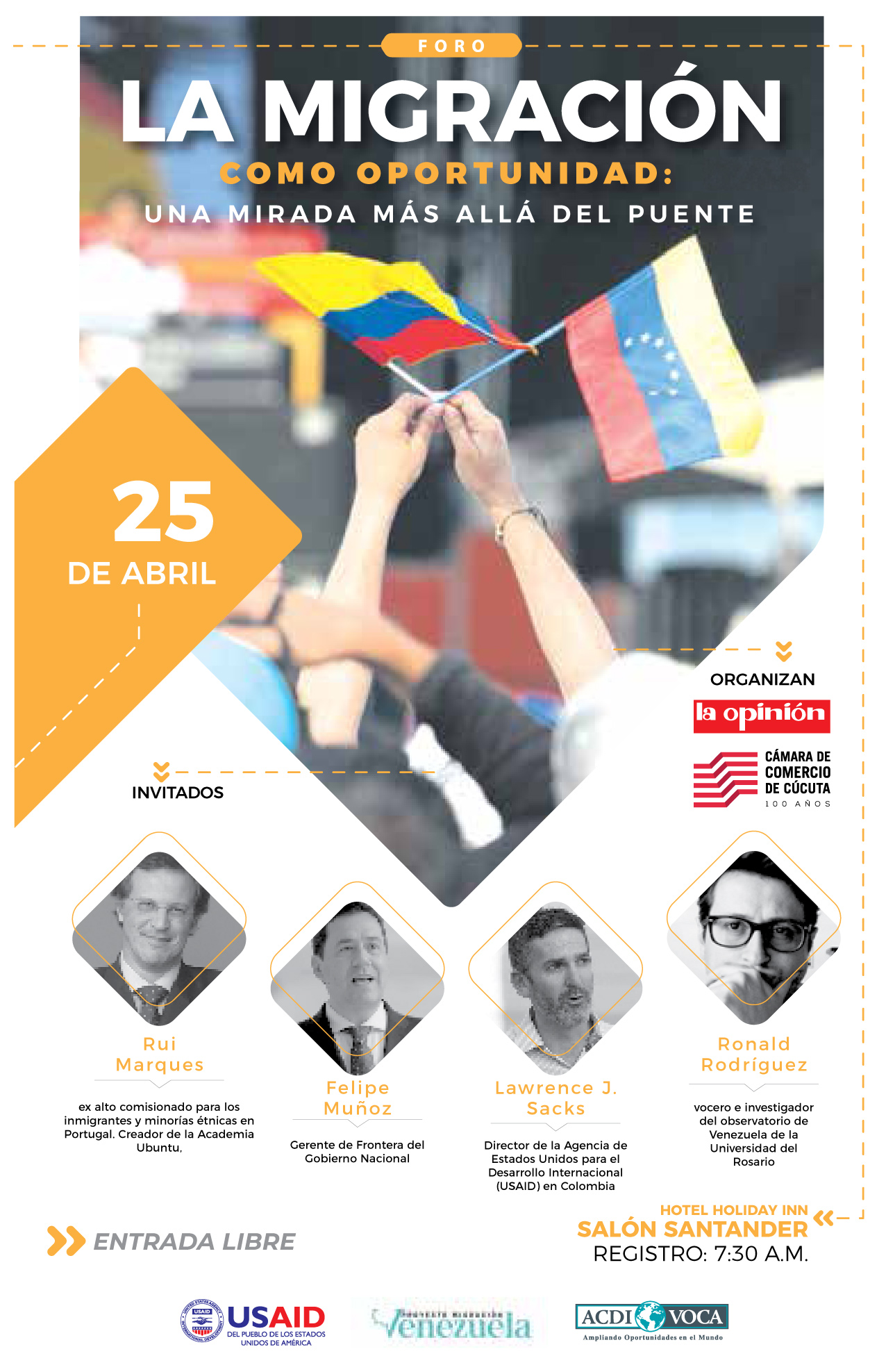 De esta manera, al tener un estatus legal, los migrantes podrán aportar a la economía, al capital humano y al desarrollo de los territorios. Con esta premisa como punto de partida, el próximo 25 de abril, La Opinión y la Cámara de Comercio organizan en Cúcuta el foro ‘La Migración como oportunidad: una mirada más allá del puente’, enfocado en cambiar la percepción del fenómeno, teniendo en cuenta el caso de éxito de Portugal.