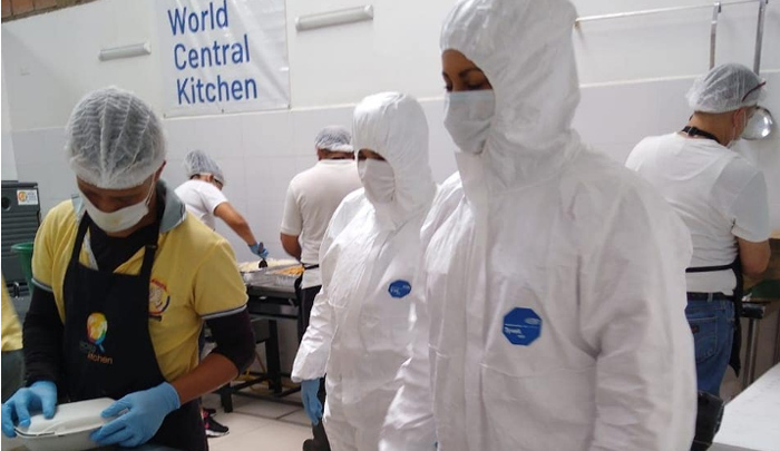 Con las medidas de protección frente al coronavirus, trabajan a puerta cerrada con los protocolos de seguridad y saneamiento correspondientes. “Recibimos apoyo de la organización World Central Kitchen y a diario preparamos entre 500 y 700 almuerzos, que entregamos a población retornada y migrante en el municipio”.