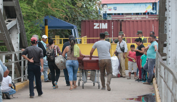 Arelis lideraba la marcha por el puente, le seguía su marido, el funerario y su hija Génesis, quien caminaba junto a su excuñada. Cuando llegaron a la parte venezolana del puente, le mostraron el acta de defunción a uno de los guardias, quien les pidió que revisaran si en territorio venezolano ya estaba la carroza que los llevaría hasta Mérida. ‘Nano’, como Arelis le dice de cariño a su marido, fue a Boca de Grita en busca del conductor de la otra funeraria.
