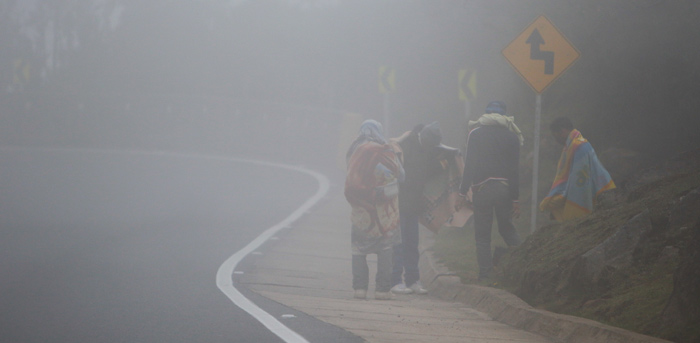 El frío, los miedos, el cansancio, se unen allí, tras dos días desfilando por la vía nacional, con esguinces, principios de hipotermia, confusión, dolor de cabeza y desgarres.