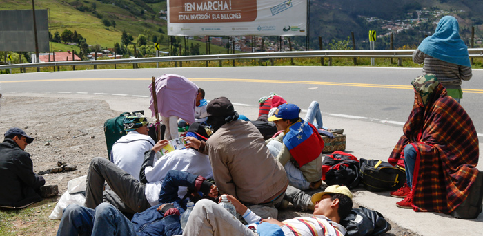 La ruta es dura y se padece con el frío. Cuando se detienen en la vía piden ‘cola’, un aventón, extienden cobijas y usan las maletas como almohadas para estirarse. Los niños reposan en coches cuyas llantas van chuecas.