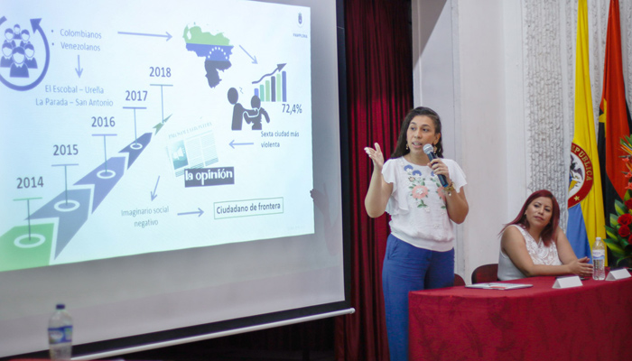 La importancia del mensaje y contenido fotográfico que presentan los medios de comunicación sobre el fenómeno migratorio fue explicado por todos los especialistas, pero fue tratado por la profesora Julieth Villabona, de la Universidad de Pamplona, quien junto con la estudiante Angélica Pereira, explicaron la importancia de la resignificación del ciudadano de frontera.