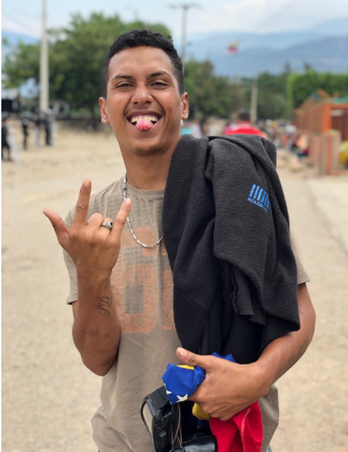 Tiene 24 años. Dejó su natal Valencia y a sus dos hijos, para llegar a luchar por el ingreso fallido de la ayuda a su país. Lo que más le gusta es la velocidad y aunque ahora mismo no esté a bordo de una motocicleta, vive la adrenalina siendo el principal vocero de toda la tropa de ‘panas’, como ellos mismos se hacen llamar.