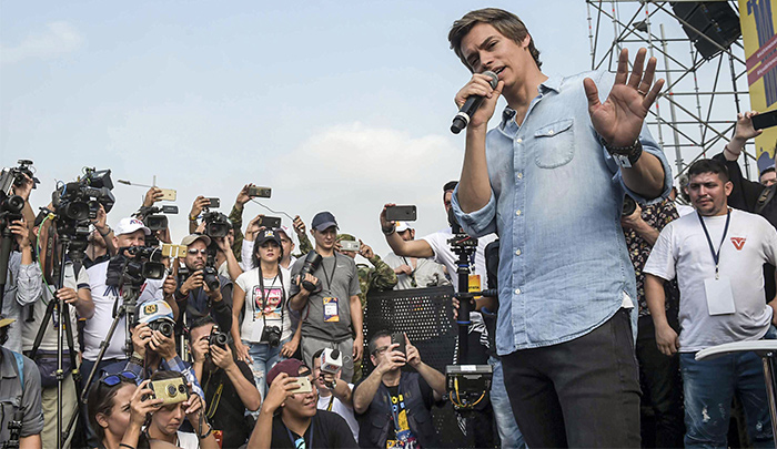 Al promediar la tarde apareció en la tarima. Su pedido fue muy claro: “Gracias a todos. No existen fronteras entre Colombia y nosotros. Solo lo puso el ilegítimo. Mañana vamos a hacer historia. Esos cientos de miles vamos a abrir el canal humanitario”, anunció. También le pidió al mundo que sigan ayudando: “Necesitamos más donaciones”. Los venezolanos por primera vez en la historia, sin colores políticos, queremos elecciones libres. Estamos cerca”, dijo. “Ven