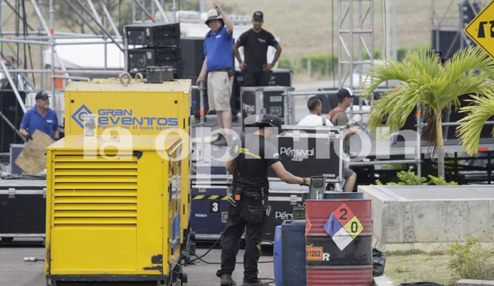-La tarima principal, que será giratoria, tiene 16 metros de alto y a lo largo del espacio instalaron 11 torres de sonido.