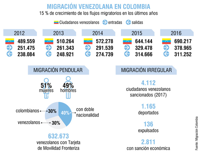 El crecimiento de los flujos migratorios, en los últimos años, y la dinámica de migración en la frontera, si bien indica que la zona limítrofe es más activa, no implica que hay un éxodo masivo de venezolanos, según dice Migración Colombia.