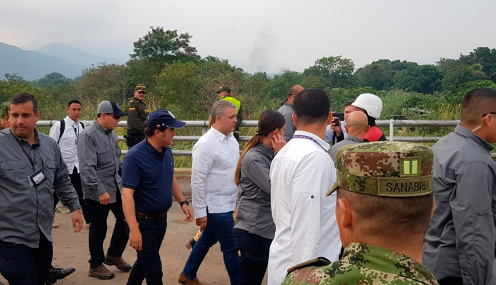 El presidente de la República, Iván Duque, recorrió este domingo en la mañana los puentes Simón Bolívar y Francisco de Paula Santander, en donde se presentaron en las últimas horas enfrentamientos entre manifestantes y policía venezolana, por el intento de llevar ayuda humanitaria a Venezuela.