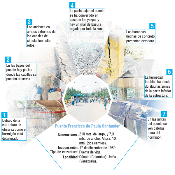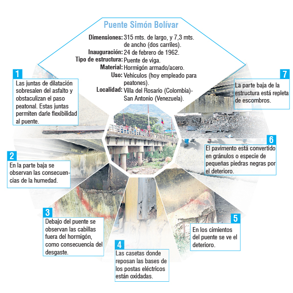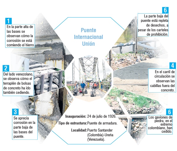 Mantenimiento. Esto es lo que requieren los tres puentes internacionales que sirven de paso fronterizo con Venezuela. Todos tienen más de 10 años sin cuidado adecuado, a pesar de que por ellos circulan diariamente miles de personas. Un promedio de más de 80 mil.
