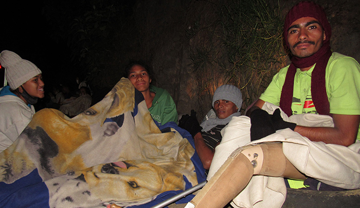 En las noches, todos duermen en los andenes, al pie de un cerro y algunos al costado de la carretera, expuestos a los vehículos pesados.