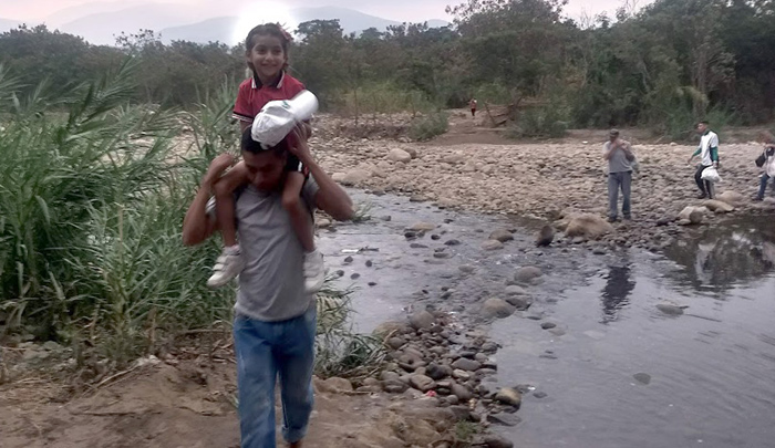 Voluntarios ayudan a pasar por trochas hacia territorio colombiano a los niños que vienen a recibir clases en colegios de Colombia.