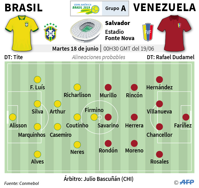 La selección brasileña buscará desde este martes desde las 7:30 p.m. su clasificación para los cuartos de final de la Copa América 2019 con una victoria sobre una Venezuela que no renuncia a dar la campanada en el Arena Fonte Nova de Salvador.