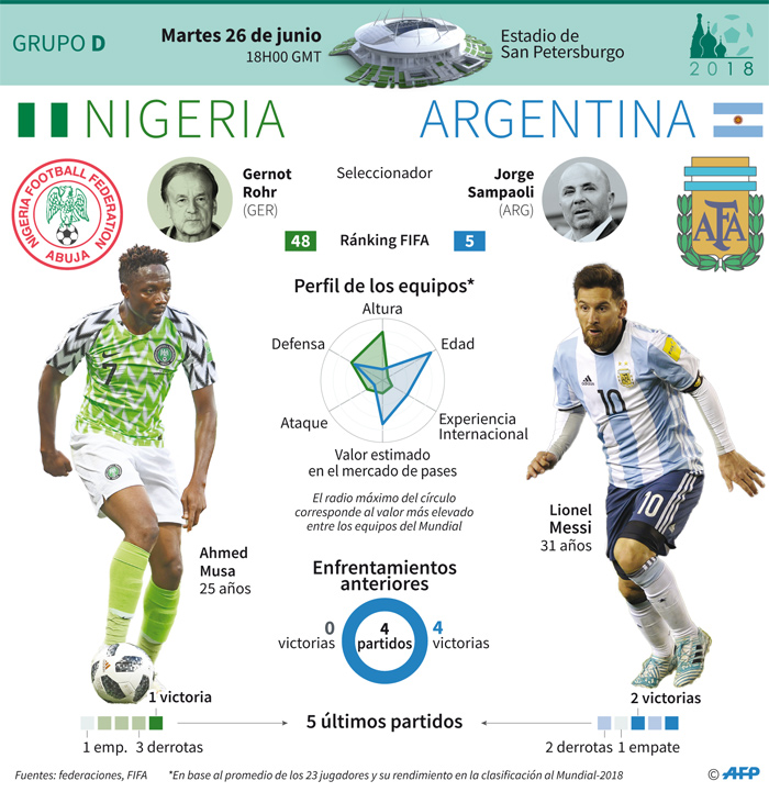 "Estamos centrados en nuestro equipo. Nos encanta Messi, a todos les encanta pero la pregunta no es si va a ser su último partido o no sino clasificar a octavos. Somos profesionales, tenemos que representar los colores de Nigeria y en fútbol no hay piedad. Todos quieren ganar y nadie hace regalos, por mucho que les guste tanto este jugador", aseguró.