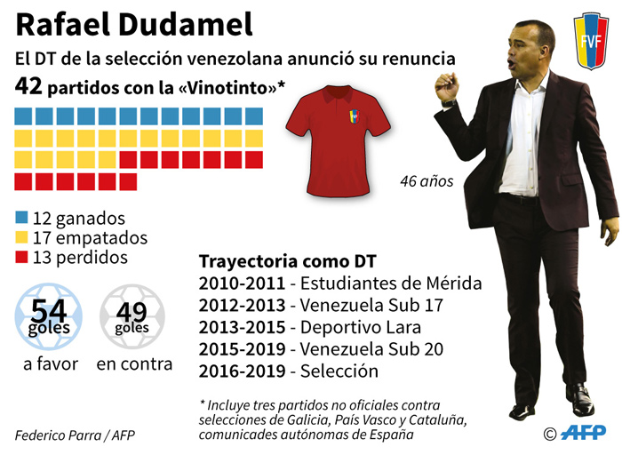 El DT, que el martes cumple 47 años, anunció el jueves su renuncia a la Vinotinto, como se llama a la selección venezolana, alegando que la relación con la dirigencia de la Federación Venezolana de Fútbol (FVF) "se fue deteriorando aceleradamente en los últimos tiempos y en las condiciones actuales era muy complicado continuar".