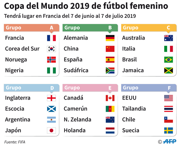 España se enfrentará en la primera fase del Mundial de Fútbol Femenino Francia-2019 contra Alemania, doble campeona mundial y actual oro olímpico, mientras que Brasil, que sueña con su primera corona, tuvo un sorteo más benévolo, celebrado este sábado en París, al quedar encuadrada con Italia, Jamaica y Australia.
