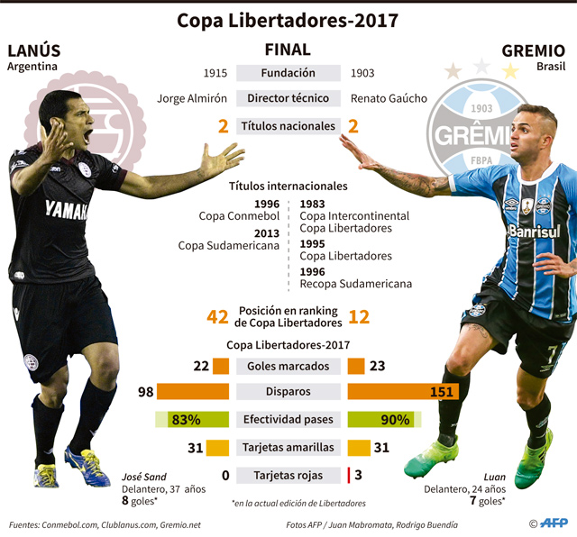Lanús sacará a relucir su juego y su mística para revertir el 1-0 en contra que se llevó de Brasil ante un Gremio decidido a mantener la ventaja, en la final de la Copa Libertadores 2017 que se disputará este miércoles (6:45 pm. de Colombia) al sur de Buenos Aires.