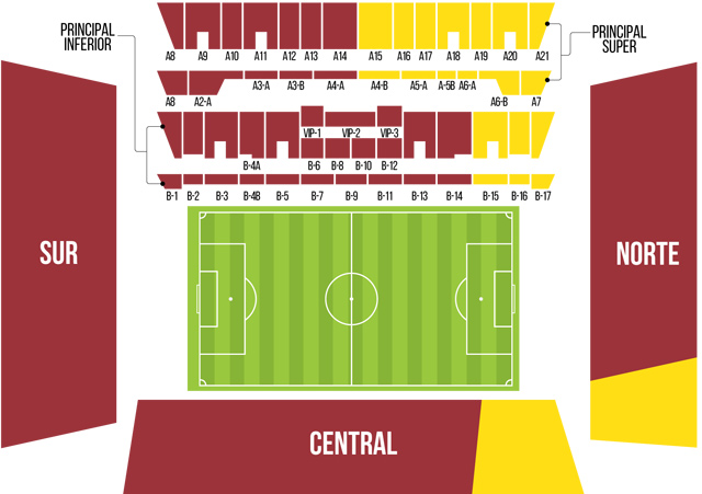 (Las tribunas marcadas en amarillo son a las que podrán acceder los colombianos para el partido en San Cristóbal.)