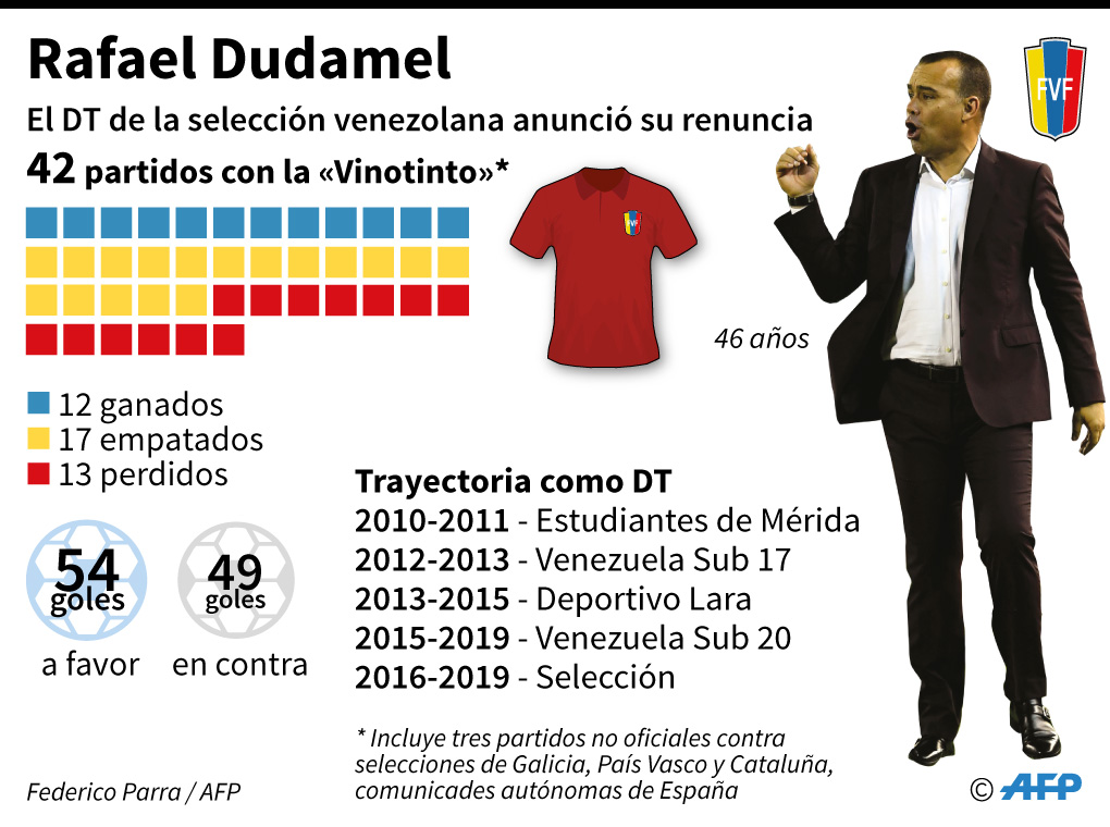 Rafael Dudamel renunció a la dirección técnica de la selección de fútbol de Venezuela, cuando faltan tres meses para el inicio de la clasificatoria sudamericana del Mundial de Catar-2022, informaron este miércoles a la AFP fuentes próximas a la negociación.