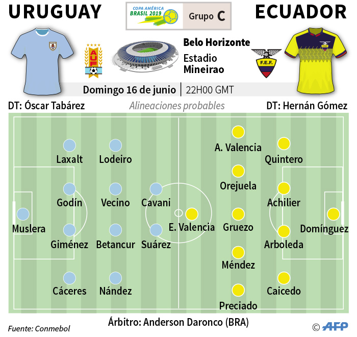 El rey de la Copa América, Uruguay, debutará este domingo (5:00 de la tarde) frente a Ecuador en Brasil-2019, con la idea de dar el primer paso hacia un decimosexto trofeo.