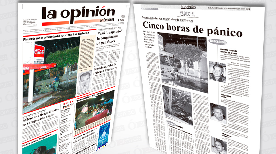 Lo que pudo ser en ese entonces uno de los peores y tristes atentados terroristas de Cúcuta y Colombia, afortunadamente se convirtió en una acción frustrada de la guerrilla del Ejército de Liberación Nacional (Eln). El hecho ocurrió el 19 de noviembre de 2002 en la sede del periódico La Opinión.