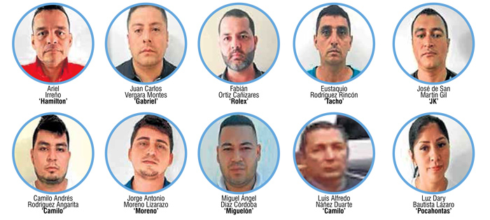 Para las autoridades, Hamilton y Roca fueron los más importantes dentro de la banda. “Ellos pactaban los negocios con los narcos mexicanos y hondureños”. Luego estaban quienes supervisaban la producción y transporte de la droga, ellos son: alias JK, Gabriel, Tacho, Camilo, Jorge Moreno, Miguelón y Camilo Rodríguez, mientras que alias Rolex y Pocahontas se encargaban del movimiento de dinero, tanto de las ventas de cocaína, como del pago a los obreros que estaban en los laboratorios y de la compra de la base de coca.
