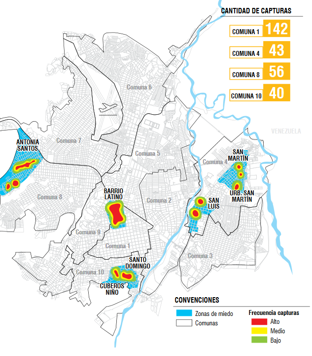 Los barrios Santo Domingo, Antonia Santos, La Tomatera, San Luis, San Martín, los parques Mercedes Ábrego y Lineal y el Canal Bogotá, son las zonas priorizadas donde los uniformados enfocan el mayor esfuerzo para contrarrestar el accionar delincuencial.