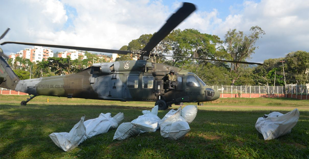 De igual manera, se apoyó con aeronaves del Comando Aéreo de Combate No.5 y No.1, brindando seguridad en el área y efectuando transporte de personal y carga en apoyo a la misión.