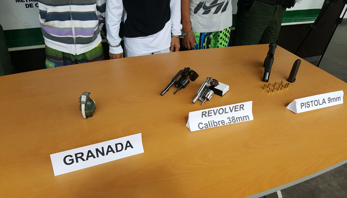 Entre tanto, adentro del inmueble, fueron detenidos Brayan Esneider Ortiz Fernández, de 18, quien portaba una pistola Tanfoglio, calibre 9 milímetros. También, Yorvin Sneider Joya Ramírez, de 20, con un revólver sin marca calibre 38.
