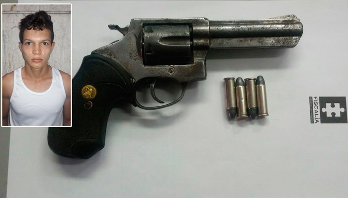 Bryan Camilo Suárez Núñez, de 20 años, fue capturado con un revólver por la Policía Metropolitana de Cúcuta, junto a un menor de 17, luego de que atracaran a mano armada a dos mujeres en el barrio Pescadero.