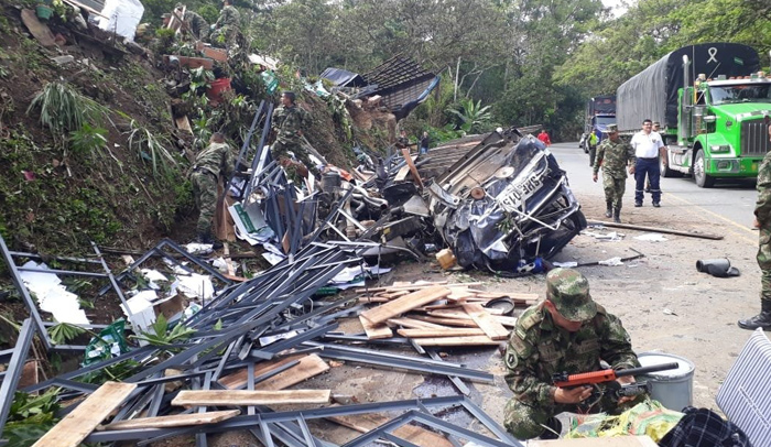 Al parecer, la causa del accidente se debió a una falla mecánica del sistema de frenos de la turbo de carga del Ejército Nacional. “El conductor se quedó sin frenos y se le neutralizó la caja, mientras trataba de frenarlo y recortarlo al barranco chocó a otro vehículo de carga en el que iban otras dos personas”, informó a Vanguardia la Defensa Civil.