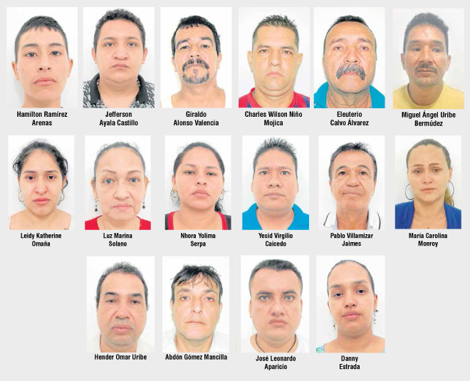 Dentro esta banda delincuencial estarían Danini Yajaira Estrada, Hamilton Ramírez Arenas, Nhora Yolima Serpa Contreras, quienes serían los caleteros.