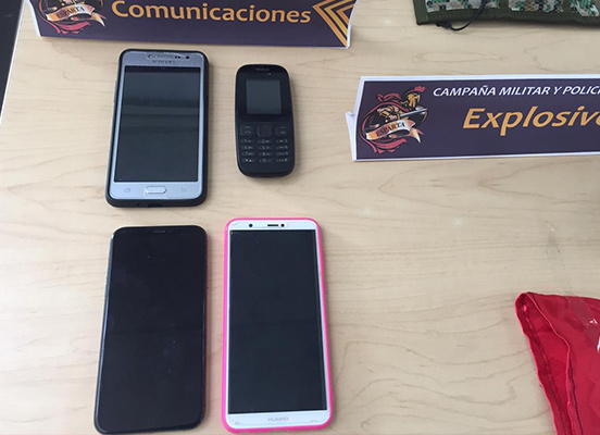 Durante la operación, las autoridades incautaron tres pistolas, una mina antipersona ‘Claymore’, un artefacto explosivo improvisado tipo sombrero, una granada IM26, cuatro detonadores eléctricos, una bandera del Eln, cuatro celulares, un tester de electricidad y documentos que serán analizados por la Policía Nacional.