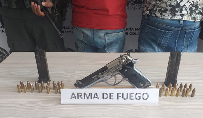 Espinel Pacheco portaba una pistola, sin permiso para porte o tenencia, mientras que a Turris le hallaron un proveedor con 15 balas 9 milímetros; las autoridades creen que él alcanzó a deshacerse del arma.