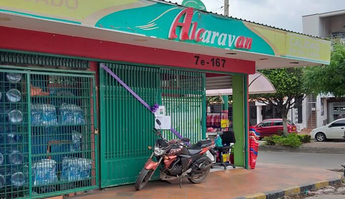 Una cinta morada, atravesada en la puerta del supermercado de propiedad de Luis Rufino León Peñaloza, es el símbolo de la tristeza y el dolor de familiares, empleados y vecinos por el asesinato del comerciante, que se registró en plena Semana Santa.