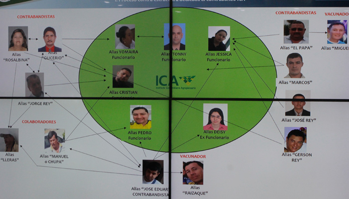 “Ellos aumentaban las reses en los predios, de manera ficticia. Por ejemplo, si a usted en la finca le aparecía que tenía cinco cabezas de ganado, le aumentaban a 50, de un día para otro, lo que permitía solicitar el permiso de vacunación. Cuando el vacunador iba, la cifra cambiaba rápidamente y figuraba que ese mismo predio tenía 500 animales. Todo eso lo metían en el sistema sin ningún problema y quedaba legal”, explicó el funcionario judicial.