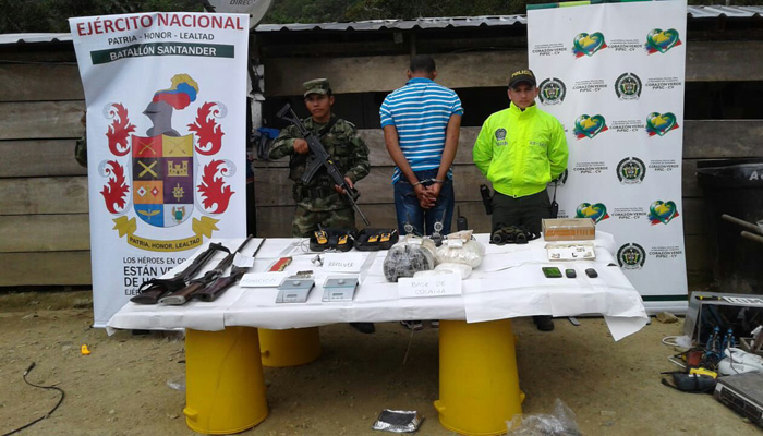 De acuerdo con la institución castrense, la construcción artesanal estaba en límites con Cesar, en jurisdicción de este último departamento y muy cerca a Ocaña, y era custodiado por un hombre armado, quien fue detenido y al que le decomisaron un revolver, calibre 38 milímetros.