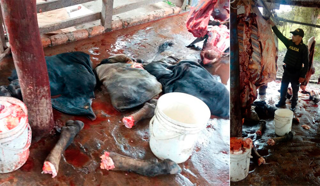 Quintero destacó que encontraron trozos de reses colgadas en ganchos metálicos y cabezas y cueros de por los menos cuatro vacas en el piso, que estaban en contacto directo con los factores contaminantes del medio ambiente. También consiguieron hachas y cuchillos.