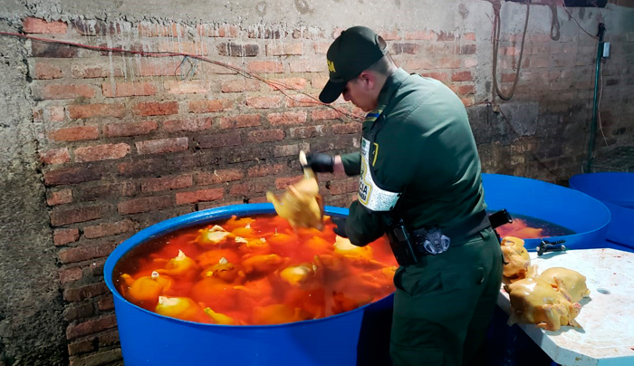 La Policía Fiscal y Aduanera (Polfa), en conjunto con la Fiscalía y el Instituto Departamental de Salud (IDS), desmanteló un matadero clandestino de pollos, en el municipio de Los Patios.