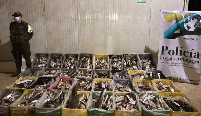 La Policía Fiscal y Aduanera (Polfa), en conjunto con la Policía Metropolitana de Cúcuta y la Seccional de Aduanas, se incautaron de 1.4 toneladas de pescado de contrabando que era transportado sin cumplir las mínimas normas de higiene.