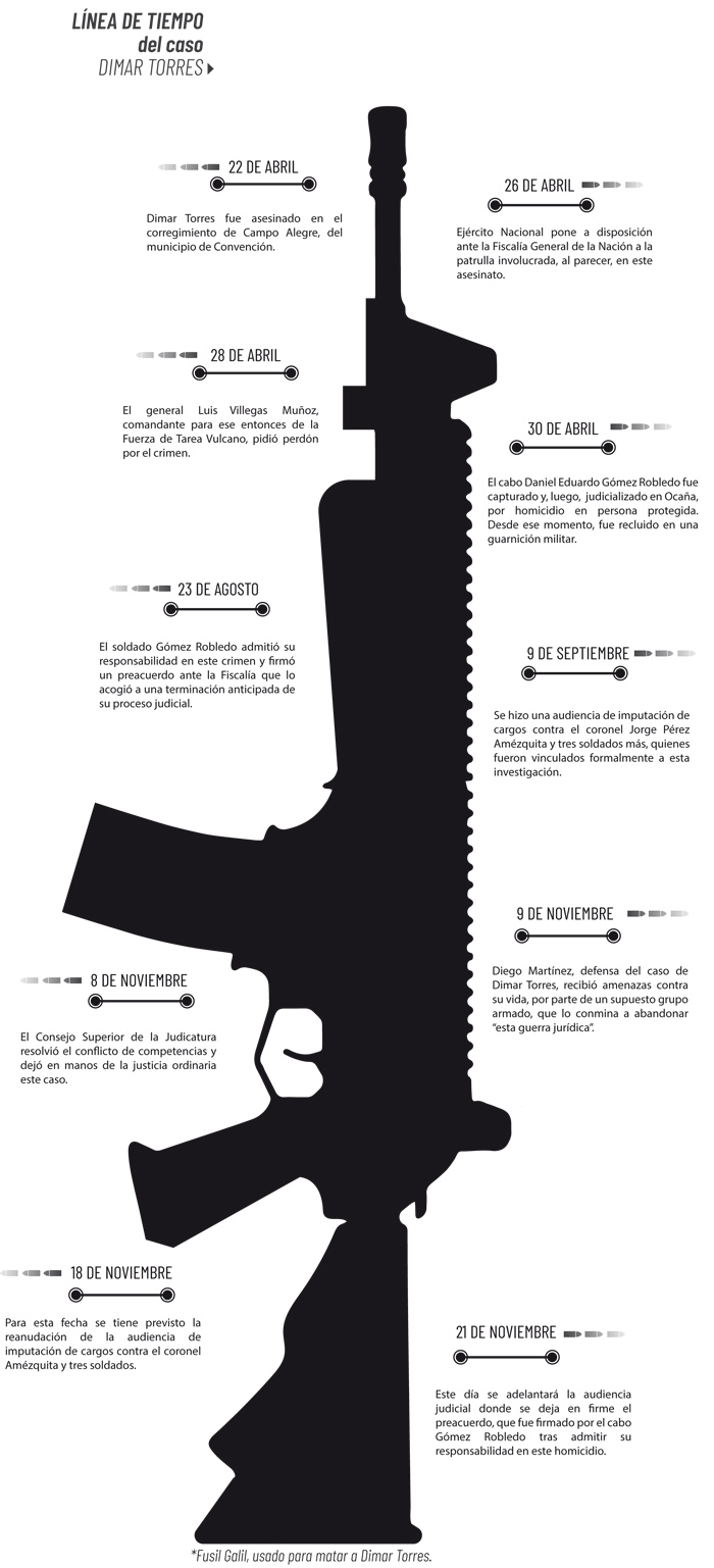 En el transcurso de este litigio judicial, las revelaciones de la Fiscalía General de la Nación le han dado la razón a la familia de Dimar Torres sobre los verdaderos móviles que rodearon esta muerte.