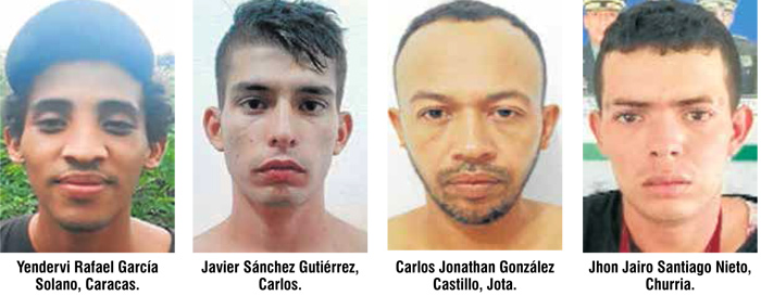 Los demás son: Jhon Jairo Santiago Nieto, Churrias; Antony Yovani Quesada Uribe, Cigarro; Yendervi Rafael García Solano, Caracas; Carlos Jhonatan González Castillo, Jota; Darwin Leonardo Silva Cova, Chaguarma; José Manuel Suárez Lozano, Juanito; Aldemar Omar Lema Jáuregui, el Gato; Fabián Andrés García Ospina, Gasolino; Anthony Criswel González Castillo; Jesús Enrique Araujo Ríos, Ñeco, y Carlos Javier Sánchez Gutiérrez.