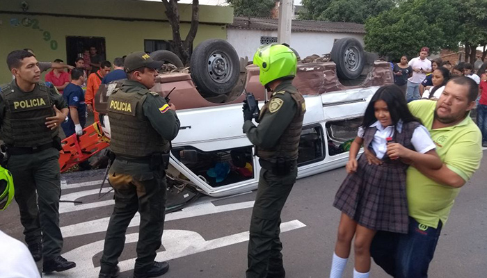Haber omitido la señal de pare, al parecer, fue la causa de un accidente de tránsito entre un microbús escolar y una buseta de servicio público, que dejó a 17 estudiantes, la conductora del vehículo estudiantil y una transeúnte heridos.