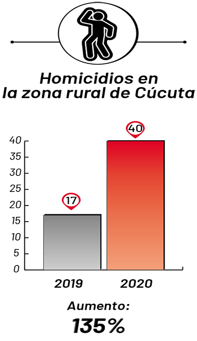 Cabe recordar que precisamente en esa parte de la zona rural de Cúcuta se libra una guerra a muerte entre los Rastrojos y el Eln por el control de los cultivos ilícitos, que alcanzarían las 400 hectáreas, además del manejo del negocio del contrabando y la ruta del narcotráfico.