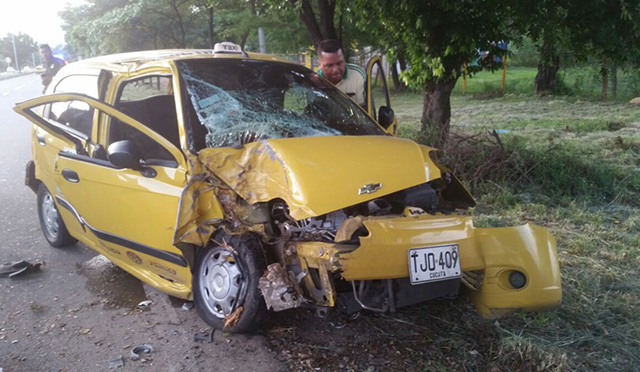 El taxi se salió hacia el lado derecho de la vía e impactó violentamente contra un árbol /Cortesía